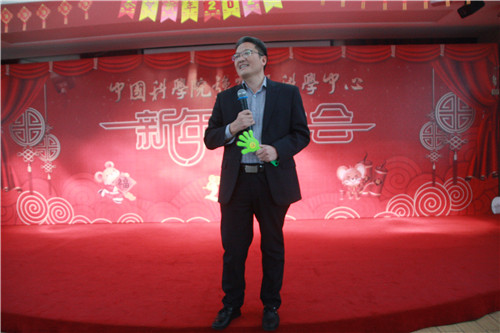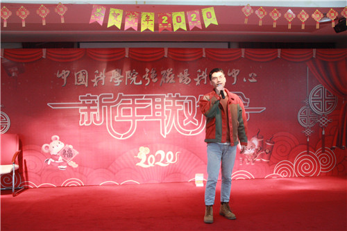 中心副主任田明亮代表中心领导班子致辞,他表示,在全体职工和研究生的努力下,中心2019年全面超越完成了各项任务目标,在工程技术、科学研究、转移转化、大装置运行等方面取得了一系列成就,中心竞争力又上新台阶。希望中心在新一年继续快速发展,争取在基础研究、应用研究取得双丰收。最后他祝愿大家新年快乐,阖家安康。