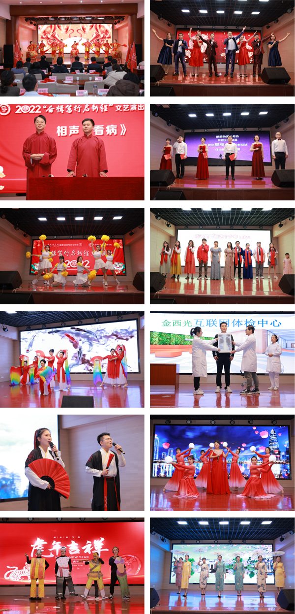 一场热闹红火的开场舞《扬帆起航》拉开了活动序幕,演员们用欢腾的舞姿传递春节的喜庆氛围;由肿瘤医院手术中心推选的相声《看病》和泌尿生殖肿瘤中心推选的小品《体检风波》,既生动形象地展现了当下互联网时代求医的众生相,又融入了肿瘤医院的诊疗特色;由健康所综合办推选的朗诵《赤子丹心 医药报国》,讲述了健康所十余名哈佛海归人员的励志故事;由肿瘤医院腹部肿瘤中心推选的《快乐翻转》创意舞蹈,以搞笑的造型和出色的演绎,点燃了全体观众的热情。