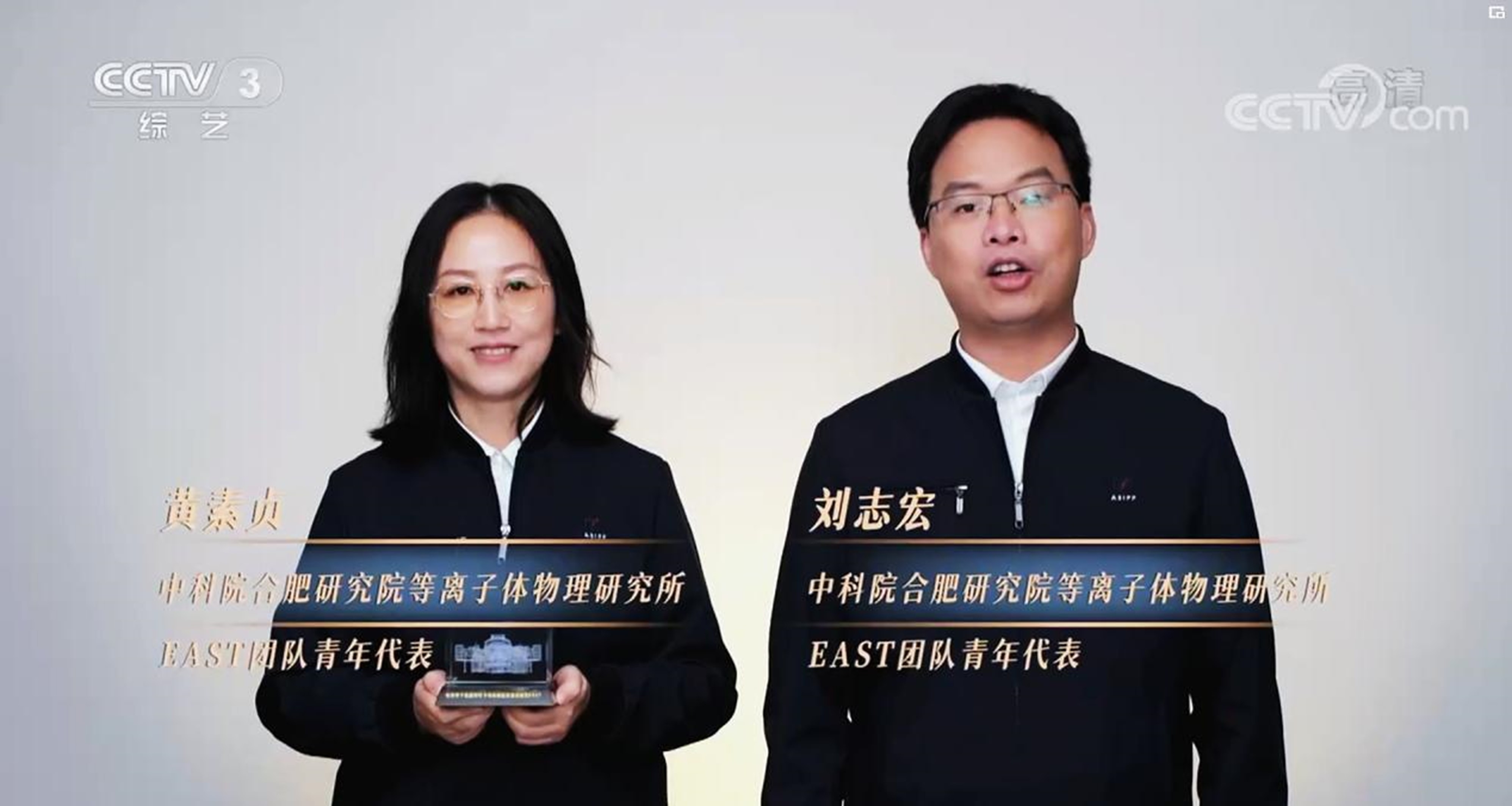 2022年12月31日晚,由中央广播电视总台打造的《启航2023——中央广播电视总台跨年晚会》登场。中科研合肥研究院等离子体所EAST团队青年代表黄素贞博士和刘志宏博士亮相跨年晚会,代表EAST团队向每一位平凡路上勇敢逐梦的奋斗者送去新年祝福。