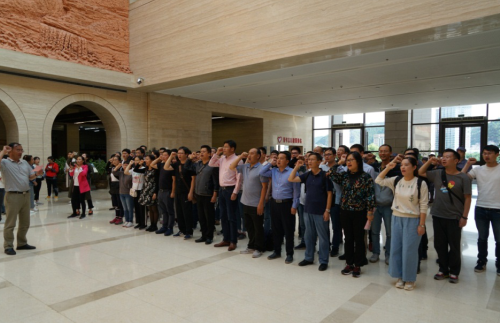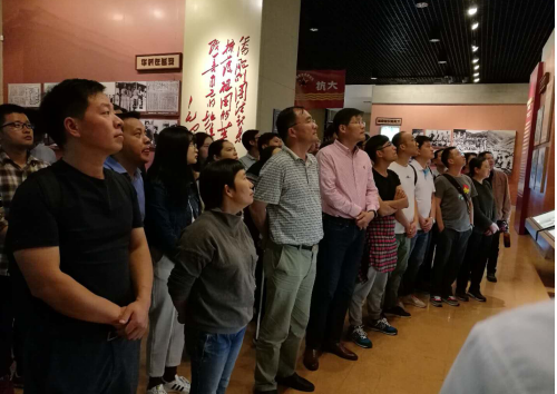 在延安革命纪念馆,全体党员敬献了花篮,向革命先烈们三鞠躬,缅怀他们的丰功伟绩,表达崇敬之情,寄托深切哀思。在解说员的引导下,边看边听,当看到一个个感人画面、一组组牺牲数字,真正了解到中国共产党是如何在延安革命根据地发展壮大的,大家深刻感受到中共在延安和陕甘宁边区领导中国革命的光辉历史。应用所全体党员还面对鲜红的党旗庄严宣誓,重温了入党誓词。