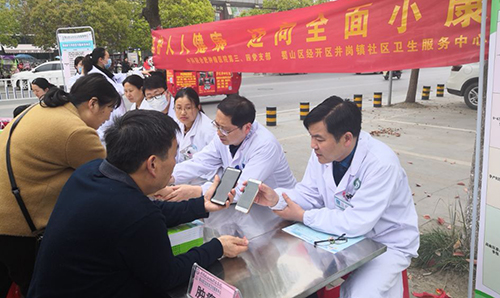 4月4日,医学物理中心第三、四党支部在合肥蜀山区蜀峰路街道联合开展主题为“维护人人健康,迈向全面小康”党日义诊活动。
