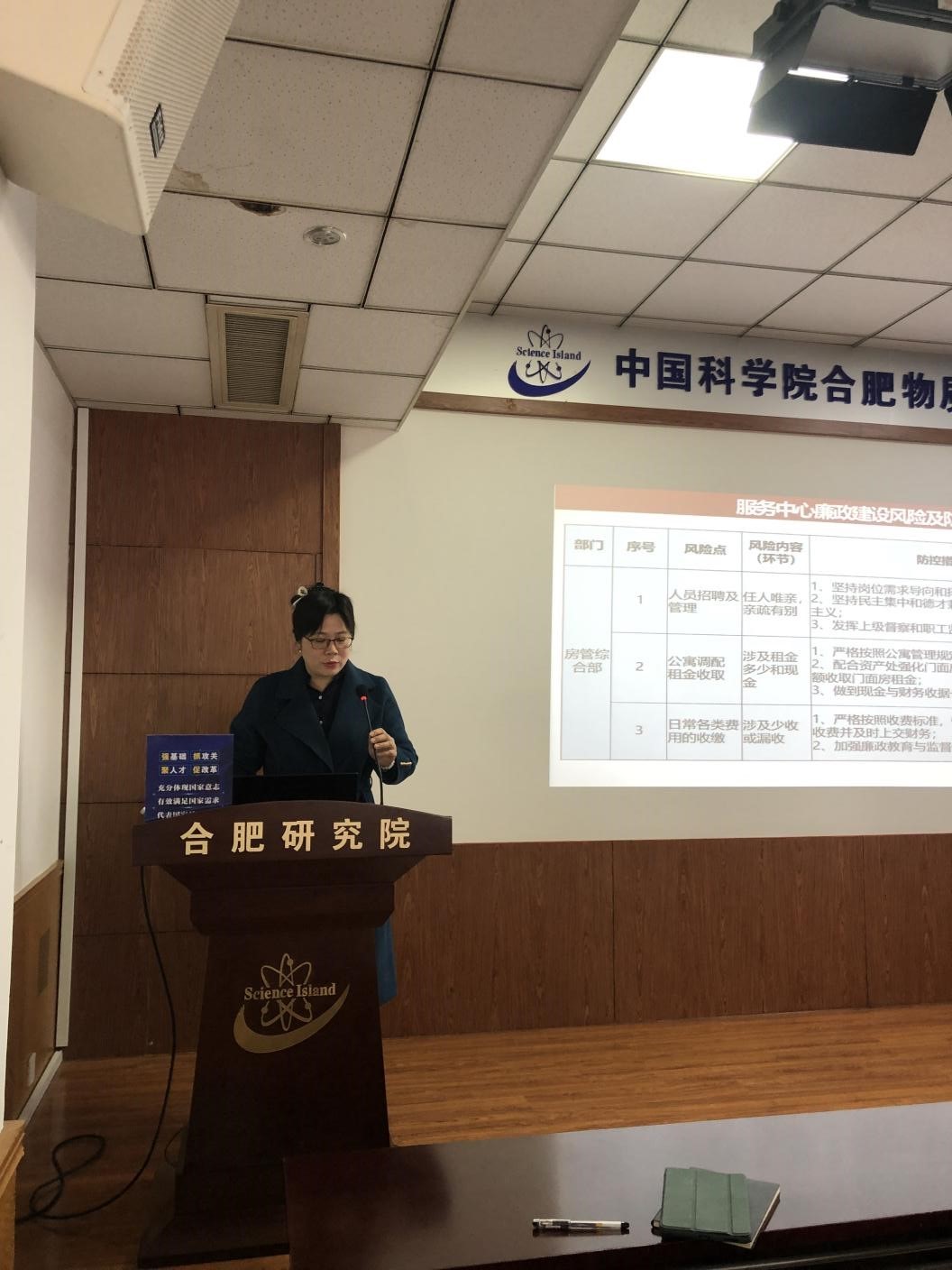 3月4日,程艳副院长在分管部门内召开“廉政风险和防控”专题教育活动,资产与条件保障处、服务中心、合肥现代科技馆、计量与检测中心及新闻中心的党员同志及一线主管人员共同参会。资产与条件保障处处长赵鹏集中汇报了四个部门的廉政风险点、风险内容、防控措施。此前,各部门做了详细的材料准备和汇总工作。