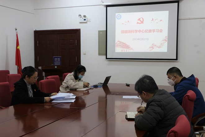 2月28日,强磁场科学中心纪委召开理论学习会议,会议由中心纪委书记许安主持,中心纪委委员陈峰、吴芳明参会,综合办副主任邵梦媛列席会议。
