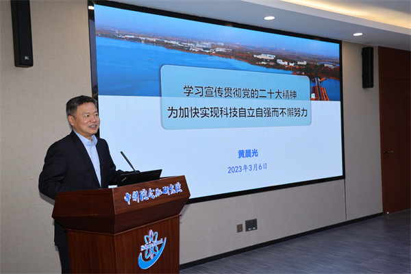 合肥物质院党委书记黄晨光做了题为《学习宣传贯彻党的二十大精神 为加快实现科技自立自强而不懈努力》的宣讲报告,他结合自己对党的二十大精神内涵和重大意义的理解领会,以宏大视角、鲜活事例,深入浅出、现场互动,系统梳理了二十大报告的内在逻辑和理论内涵。黄晨光强调,要牢牢把握过去五年工作和新时代十年伟大变革的重大意义,重点把握好三件大事的重大意义、十年伟大变革的里程碑意义,深刻领悟“两个确立”的决定性意义,增强“四个意识”、坚定“四个自信”、做到“两个维护”。