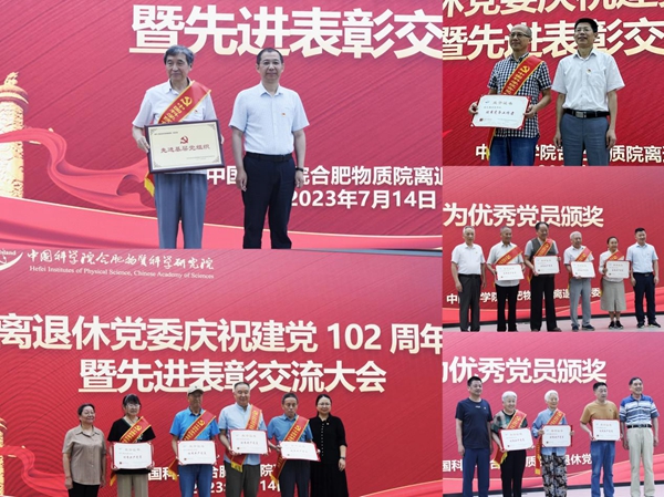 大会播放了2022-2023年合肥物质院离退休工作回顾视频。随后,吴新潮宣读了离退休党委《关于表彰2022—2023年离退休优秀共产党员、优秀党务工作者和先进基层党支部的通知》。邹士平、陈宗发等为优秀个人和先进党组织负责人颁发了荣誉证书和奖牌。