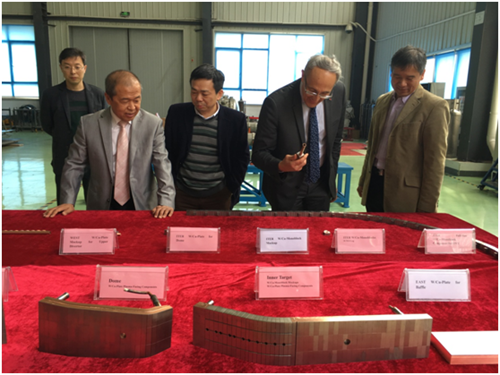 ITER总干事Bernard Bigot和国家ITER中心执行主任罗德隆了解ITER钨铜偏滤器部件研制进展