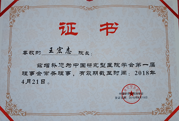 王宏志研究员当选中国研究型医院学会第一届理事会常务理事
