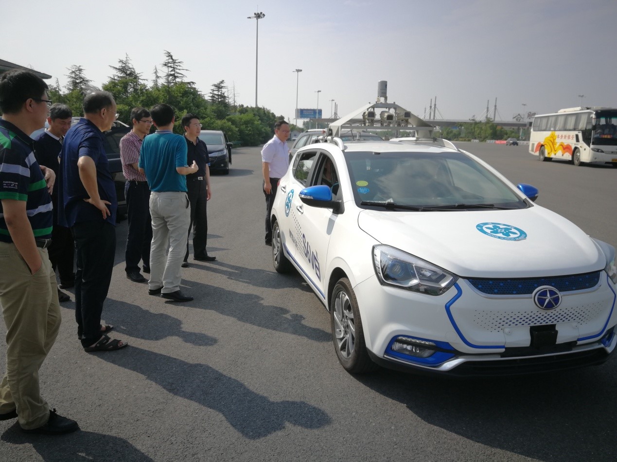 验收会前,基金委信息学部李建军常务副主任、刘克处长等领导现场考察了合肥研究院研制的“智能先锋号”无人驾驶汽车。李建军主任体验了无人驾驶汽车的开放式道路自主行驶,从高速收费站经快速路、城区路、下穿路等道路自动驾驶到应用技术研究所门口。行驶过程中,“智能先锋号”表现出了对不同道路不同工况的良好适应能力和对道路上其他车辆、行人的优秀响应能力,得到了各位领导的充分肯定。