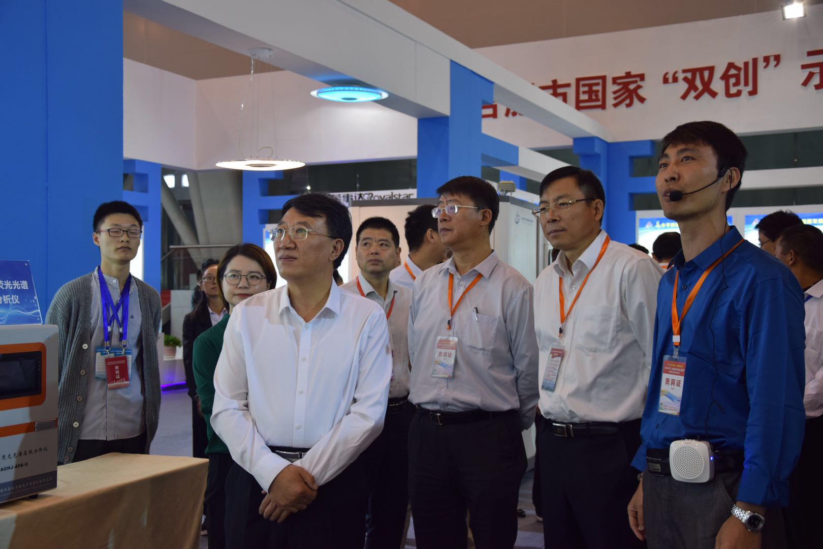 本次活动中,合肥研究院亮相的成果包括:物联网领域的公车管理与公务出行北斗导航云服务平台、环境监测领域的便携式多组分危化气体傅立叶红外分析仪、水体藻类荧光光谱在线分析仪,健康医疗领域的糖尿病无创检测仪和自动化微流控核酸检测仪,气象监测领域的大气环境立体走航观测车、大气水汽气溶胶激光雷达、降水天气现象仪对外仪器、全天空云图仪等。合肥市委常委、市政府常务副市长罗云峰,省发改委党组成员、总工程师笪艺武及合肥市发改委、经信委、科技局等领导来到合肥研究院展台前视察,了解研究院双创示范基地建设进展及相关产业化项目的推广使用情况,并给予高度赞赏,提出双创示范基地的成果和产品要推向全省乃至全国范围。中科院科发局科技合作处处长刘斌及相关人员还到现场了解区域STS项目“水相关气象要素探测设备工程化研发及产业化”的进展和产业化情况。