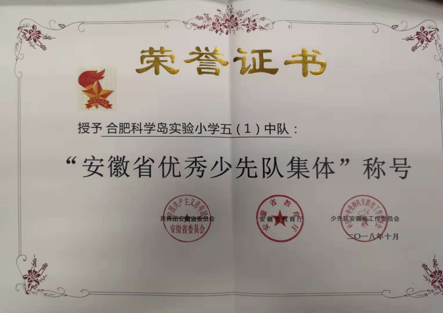 为深入贯彻落实新时代中国特色社会主义思想,展现和弘扬当代少先队员、少先队辅导员、少先队工作者和少先队集体的精神风貌和先进事迹,近日,共青团安徽省委员会、安徽省教育厅、少先队安徽省工作委员会对全省表现突出的少先队员、少先队辅导员、工作者及少先队集体进行了表彰。科学岛实验小学孙沐阳同学被授予“安徽省优秀少先队员”称号,五(1)中队被授予“安徽省优秀少先队集体”称号。