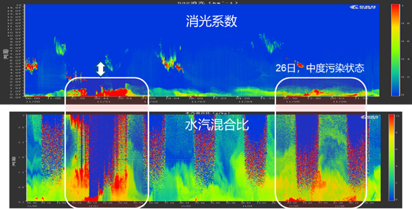 大气水汽-气溶胶激光雷达(拉曼-米型),实现对大气气溶胶、水汽混合比、云信息、大气边界层、能见度、光学厚度、污染物时空分布等信息的实时测量与展示。在传统米散射气溶胶激光雷达的基础上增加了氮气拉曼探测通道和水汽拉曼探测通道,提高气溶胶消光系数的反演精度,同时实现了水汽混合比垂直分布的协同观测。