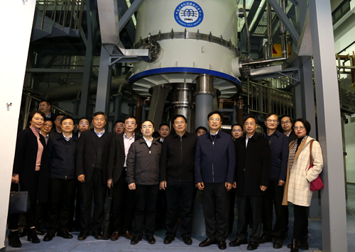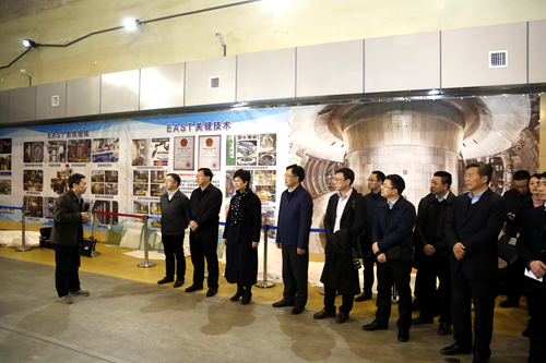 随后,吴存荣、张宗益一行先后到等离子体所、强磁场中心以及合肥离子医学中心参观,考察调研了全超导托卡马克核聚变实验装置和稳态强磁场实验装置等,详细了解大科学工程项目的建设、运行和产出等情况。