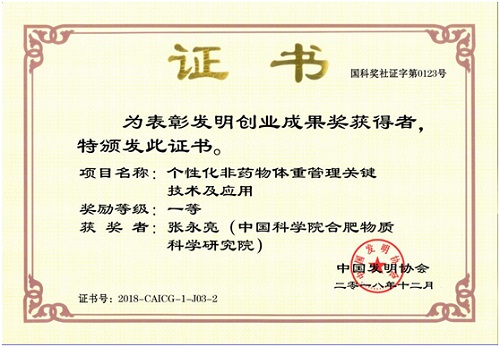 4月17日,智能所运动与健康信息技术研究室与解放军301医院曾强教授团队等联合研发的发明成果“个性化非药物体重管理关键技术及应用”,在第十三届中国发明家论坛暨发明创业奖颁奖典礼上被授予2018年度发明创业成果奖一等奖。