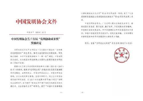 发明创业奖是经国家科学技术奖励工作办公室批准,由中国发明协会在2005年设立的奖项。第十三届中国发明家论坛暨首届发明创业奖颁奖典礼由中国发明协会、科技日报社、国家科学技术奖励工作办公室、中国知识产权报社共同举办。