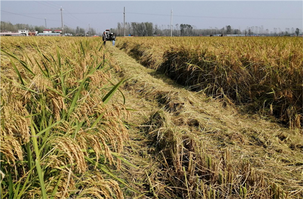 专家组对示范区水稻进行机械实打实收,测产结果表明:与农民习惯种植模式相比,控失肥减氮10%示范区优质水稻产量增加127.0kg/亩,增产幅度24.8%;控失肥减氮10%加有机肥示范区优质水稻产量增加135.4 kg/亩,增产幅度26.5%。优质水稻配合高效施肥示范工作取得显著效果,对促进河南水稻生产化肥减量、提质增效、稳粮增收形成良好示范,为实现河南粮食生产减肥增效提供有效助力。
