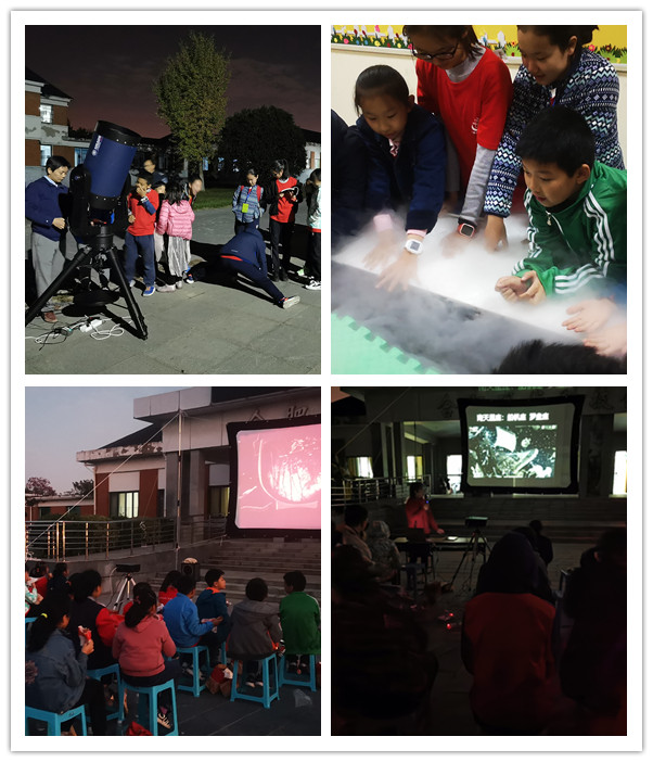 夜幕降临,“科技馆奇妙夜”开启,露天电影《太阳系》《宇宙与人》、“魔术”表演《吞云吐雾》、天文科普报告、望远镜观测星空等一批有趣的活动正等着大家。液氮饼干吃进嘴里喷出白色气体,好玩又有趣;通过大口径天文望远镜清晰地观测到月球表面环形山和土星光环,让孩子们兴奋地尖叫起来。