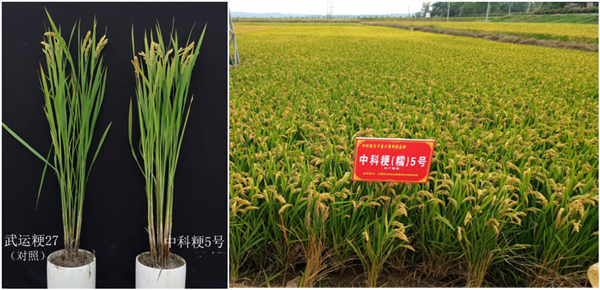 “中科粳5号”植株及大田长势