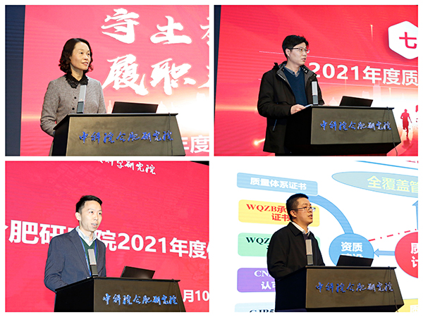 会上,安全管理处处长谭立青作《合肥研究院2021年度安全工作汇报》,保密办主任朱卉乔作《合肥研究院2021年度保密工作汇报》,质量办主任朱正恺作《合肥研究院2021年度质量计量工作汇报》,总结过去一年的工作成绩并提出2022年的工作重点。