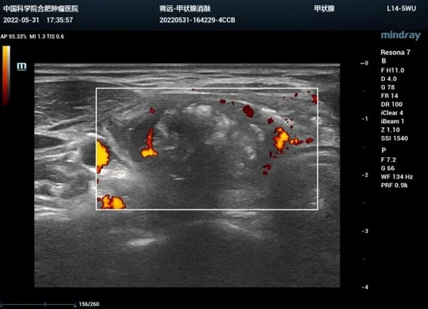 近日,中国科学院合肥肿瘤医院医学影像中心超声影像科成功完成一例巨大甲状腺结节微波消融术,开创了医院消融治疗甲状腺结节新方法。