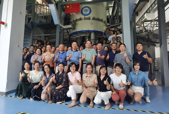 中心主任孙玉平在发言时说,此次混合磁体取得重大技术突破,给全体强磁场人带来极大鼓舞。尤其是看到队伍中,大批年轻人发挥了骨干引领作用,自己由衷感到高兴。此次实验正值夏季高温,团队成员主动放弃假期、加班加点实验,是大家用团结和汗水写就了这项成绩。他说,接下来中心会系统谋划未来工作,争取用户依托装置早出成果、多出成果。