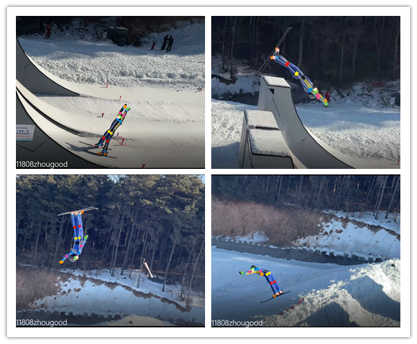 项目组为冬奥项目自由式滑雪空中技巧、U型场地等项目开发了系列创新产品,针对自由式滑雪空中技巧特点,采用高冲击性,大跨度量程和高精度的可穿戴柔性力敏传感器,检测运动员训练比赛全程压力,足前区、足中区、和足后区的压力、压强,测试时间内的压力中心(cop)的轨迹,全面解析空中技巧运动员整个动作过程中的动力学特征。同时,项目研发基于高速影像数据的运动员训练辅助分析系统,根据训练任务要求多角度获取全过程影像数据,实现人体关节点的在线分析,建立人体棍图,建立矢量坐标,并自动计算人体体位角度、关节角度、倾斜角,通过对运动员训练关键环节(出台、起飞、最大高度、旋转、着落点等)的分析,方便教练和运动员定制和调整动力学姿态,以便制定针对性的空中技巧训练计划和方案,提高运动员的训练效率和成绩。