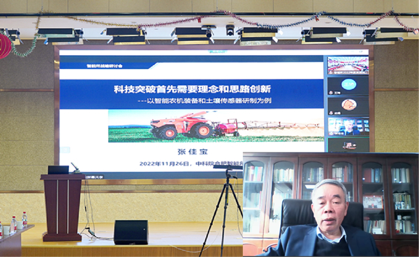 张佳宝院士作了题为《科技突破首先需要理念和思路创新--以智能农机装备与土壤传感器研制为例》的主旨报告。他结合大河湾示范区“智能农机+数据保护”模式的创新思路、体系构建、核心技术内容、推广标准等,及土壤信息智慧采集技术与设备自主创新的具体案例的研发思路、产品结构、核心技术、成果推广应用等,指出应当加强智能农机核心技术的理念创新、土壤传感技术的思路创新。