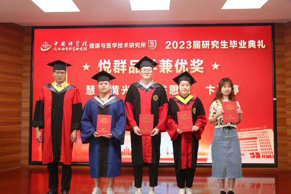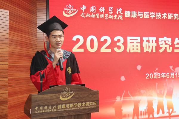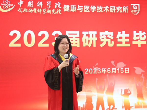 6月15日下午,中科院合肥研究院健康所2023届研究生毕业典礼在交叉科研楼902会议室举办。健康所领导班子成员,研究生处领导,导师代表及毕业班学生,获奖代表等参加了典礼。典礼由健康所副所长方志友主持。