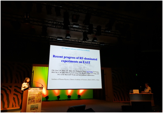 大会首日,宋云涛研究员作为大会主席致开幕辞并主持分会报告。王晓洁副研究员作了题为Recent progress of RF-dominated experiments on EAST的邀请报告,全面介绍了EAST装置射频波加热系统及相关实验进展。大会墙报方面,杨庆喜研究员、李二众副研究员和李永亮博士分别展示了International cooperation to built high power and long-pulse operation ICRF Antenna : from Qualification, manufacturing and assembly、Nonlinear Electron Energy Gain in Radio Frequency (RF) Waves Heated Tokamak Plasmas、Hot spot induced by LHCD in the shadow of antenna limiters三篇墙报,分别介绍了等离子体所在高性能ICRF天线国际合作研究、射频波加热下的等离子体非线性电子能量增益及低杂波电流驱动下的热斑产生等领域取得的最新研究进展。报告和墙报充分展示了等离子体所在波加热领域的丰硕成果,引起了与会人员的广泛关注与深入讨论。