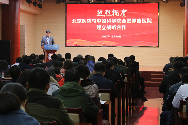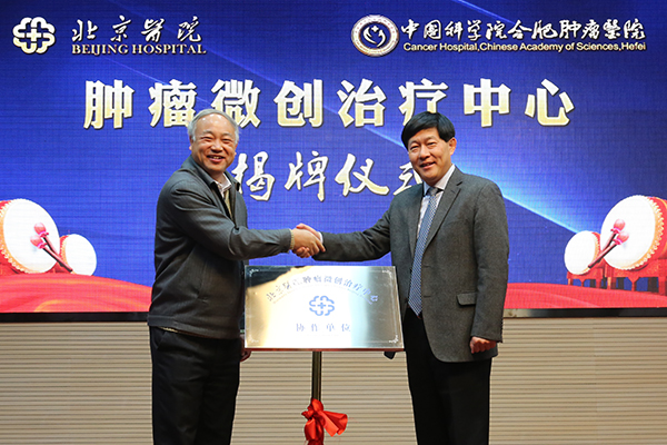 12月16日,北京医院与中国科学院合肥肿瘤医院建立战略合作,双方将协作共建肿瘤微创治疗中心,北京医院常务副院长奚桓、中科院合肥研究院副院长江海河共同为中心揭牌。
