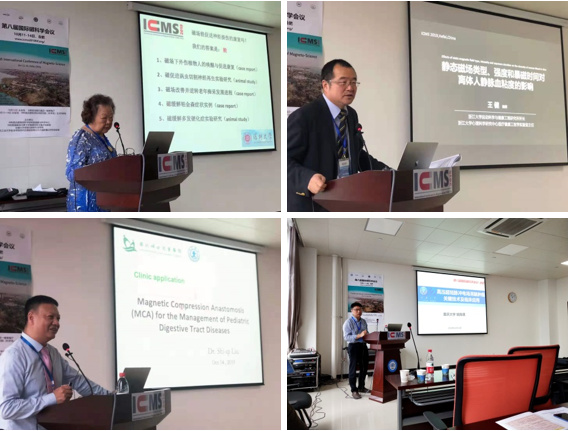 中文专场邀请了深圳大学的张小云教授、浙江大学的王健教授、重庆大学的姚陈果教授和西北妇女儿童医院的刘仕琪医生就磁场和电场在磁疗、电场治疗以及磁外科等临床应用做了详尽的报告。