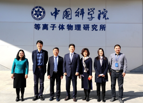 11月11日,韩国研究财团(NRF)北京代表处金俊宪代表及韩中科技合作中心(KOSTEC)金钟先代表一行来中科院合肥研究院等离子体所参观访问,国际合作处处长董少华陪同交流。等离子体所副所长胡建生、综合办副主任杨曜热情接待了来访团队一行。