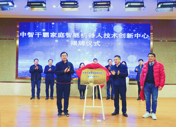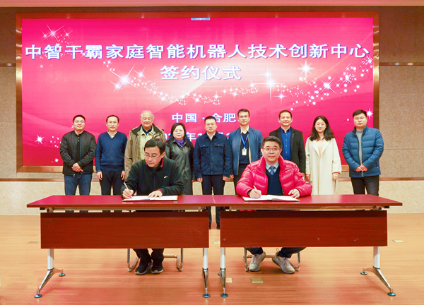 宋全军、安徽干霸电器公司总经理董刚代表双方签署“中智干霸家庭智能机器人技术创新中心”共建协议:双方将围绕技术成果开发与产业化等方面具有诸多契合点,在研发新一代智能织物护理机器人、建设相关产业技术创新基地、培育“人工智能+家居/家电”新业态等方面开展务实合作,实现优势互补、相互促进、共同发展。