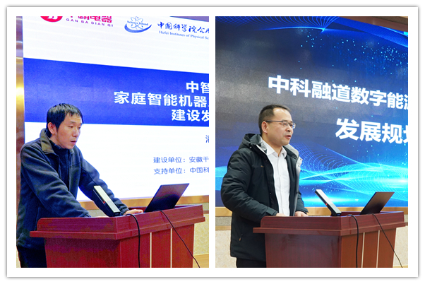 12月23日下午,中科院合肥研究院智能所分别与安徽干霸电器股份有限公司、合肥中科融道智能科技有限公司签订合作协议,共同建设中智干霸家庭智能机器人技术创新中心、中科融道数字能源技术创新中心。合肥市科技局副局长范进、智能所党委书记吴丽芳、副所长宋全军等分别为技术创新中心揭牌。市科技局副局长谢成军、合肥研究院科发处处长邓国庆、智能所葛运建研究员及合肥市统计局、高新区人事局、经贸局等相关领导专家见证。