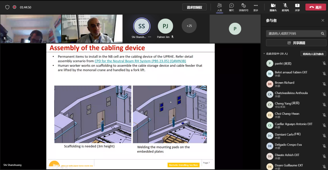 5月4日至5日,ITER上窗口插件遥操作维护系统(Upper Port Remote Handling Equipment,UPRHE)初步设计评审会(Preliminary Design Review, PDR)成功举办。会议由ITER组织主持,评审组邀请了包括12位Panel Member在内的近30位专家,来自ITER中心的Macklin Brian担任评审会议主席。本次会议全程采用线上评审模式,等离子体所遥操作组参加会议并汇报。