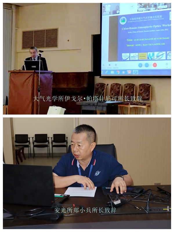 6月14日,中俄大气光学联合研究中心举办了2022年度首场大气光学研讨会。本次会议由中科院合肥研究院安光所主办,俄罗斯科学院大气光学所、安徽省气象局气科所、中科院青促会合肥研究院小组协办。研讨会线上线下同步举行。俄罗斯大气光学所所长伊戈尔·帕塔什尼可教授、安光所所长郑小兵研究员代表中俄双方参加开幕式并致辞。