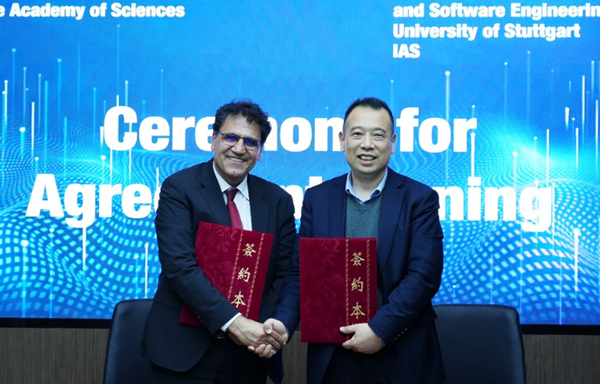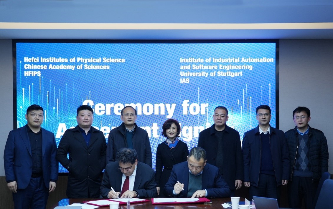 2月24日,中国科学院合肥物质科学研究院与斯图加特大学工业自动化与软件工程研究所科技合作签约洽谈会在科学岛举办。合肥物质院院长刘建国、斯图加特大学工业自动化与软件工程研究所副所长纳塞尔·雅兹迪代表双方签约。