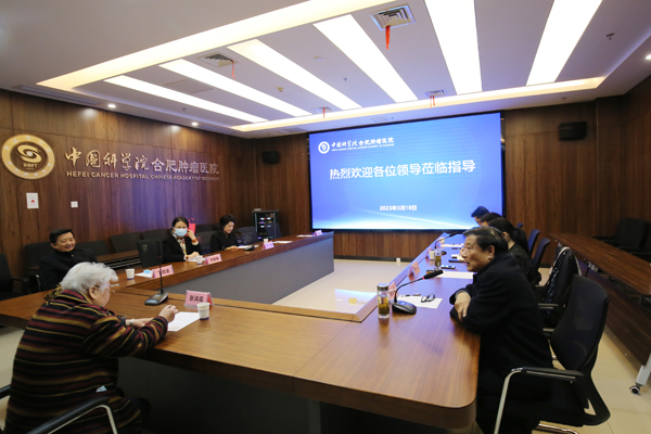 3月18日上午,安徽省原副省长张润霞、省民政厅副厅长许静静、省民政厅原副厅长丁四金等一行,在安徽省癌症康复协会会长朱静的陪同下,到中国科学院合肥肿瘤医院新院区参观调研。医院执行院长高世明、副院长夏莉等接待了张润霞一行。