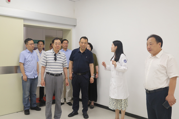谷涌泉一行还实地参观了医院肿瘤转化医学研究中心、医学病理中心、门诊诊区、医学影像中心、新飞龙复合手术室、麻醉与危重症医学中心等。