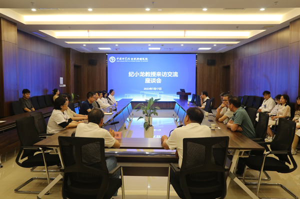 报告会后,纪小龙教授一行还与健康所及肿瘤医院部分科研及临床骨干、研究生等进行了座谈交流,并实地参观了中国科学院合肥肿瘤医院肿瘤转化医学研究中心、医学病理中心等。