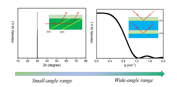 研究人员发现,X射线散射在从表征结晶有序的宽角区转变到表征片晶有序的小角区时发生了两个重大变化。其一,对于一定长度的晶面,由于波矢变小,布拉格条件不像在宽角区一样严格。在宽角区,一个晶面只对一个点的散射有贡献。而在小角区,一个晶面甚至会对整个小q区的散射有贡献。其二,散射模式发生变化。宽角X射线衍射研究的晶面往往与非晶/晶体间的界面有较大的夹角,属于非对称布拉格散射。而要从小角散射获取片晶厚度、长周期等信息,必须研究界面间的干涉。这种情况下的散射属于对称布拉格散射,可能发生全反射。当发生全反射时,入射X射线不能进入片晶簇内部诱导电子散射,其诱导电子散射的角色由倏逝波代替。由于倏逝波衰减速度快,散射强度也会快速衰减,运动学理论不再适用。