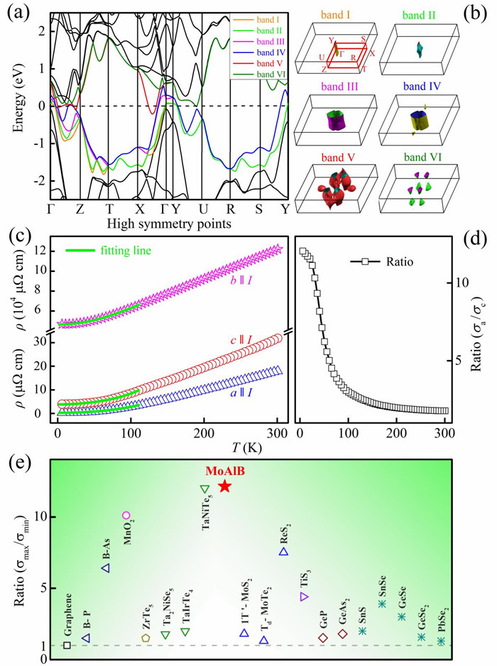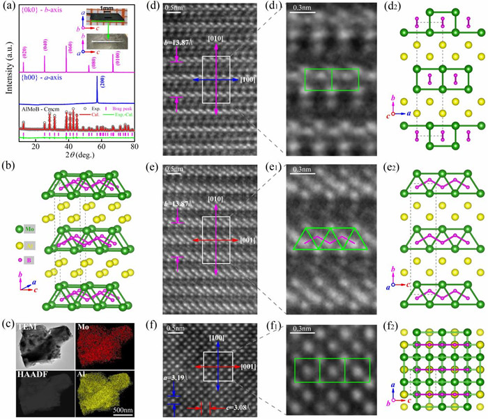 该研究为三维各向异性MoAlB单晶的应用设计提供了实验和理论依据,为实现MoB二维 MBene的合成制备提供了可能。