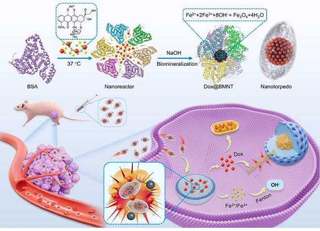 图.新型纳米鱼雷药物递送平台具有极高生物兼容性和结构稳定性有效提高药物装载效率与药效
