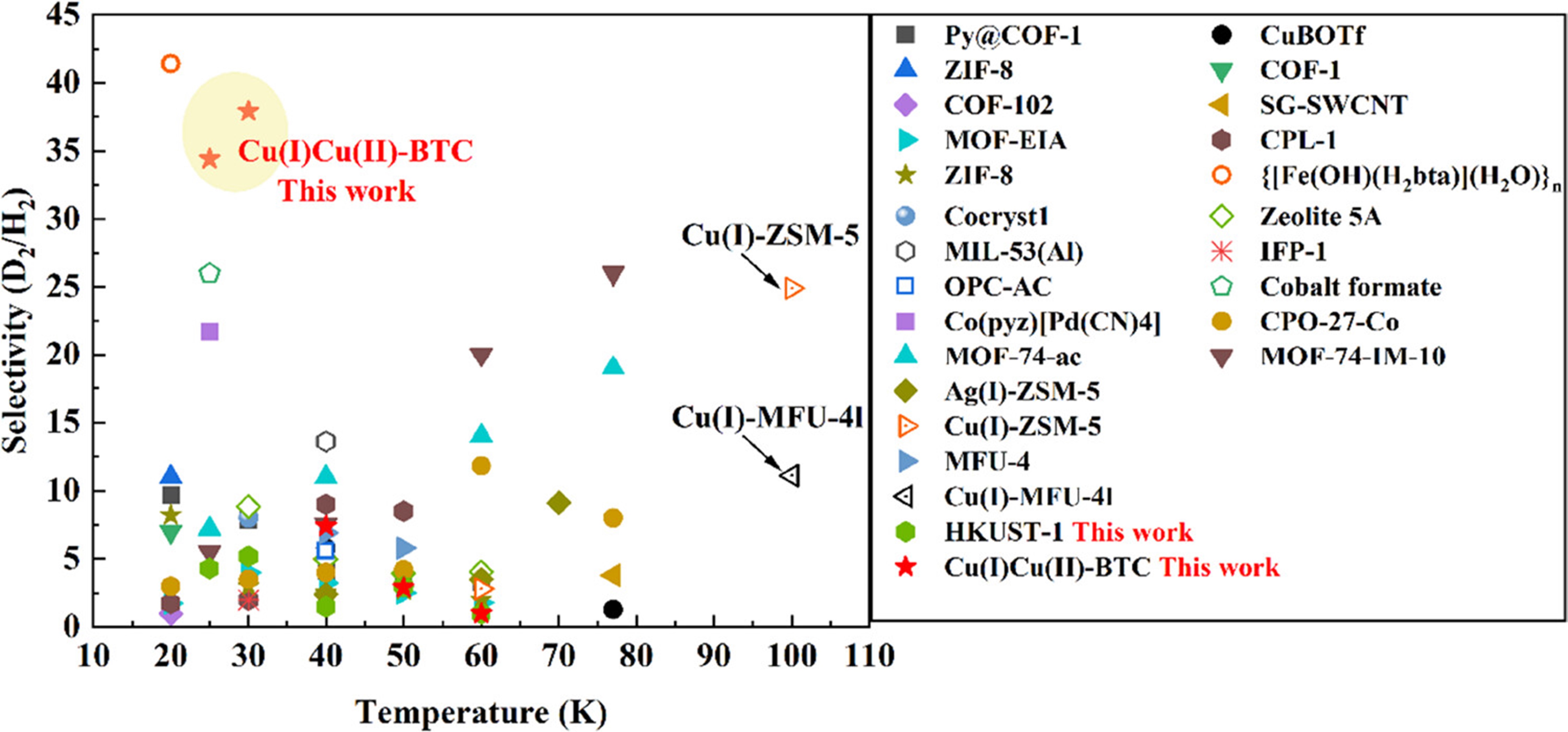 图1. Cu(I)Cu(II)-BTC分离性能比较