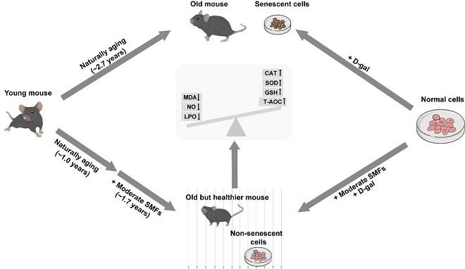 近日,中科院合肥研究院强磁场中心张欣课题组在中等和强稳态磁场对多种疾病小鼠模型的生物安全性影响方面取得系列新进展,包括发现中等强度近均匀稳态磁场常年暴露对正常小鼠自然衰老的延缓,对化疗药物顺铂引起的小鼠肾损伤的减轻,发现梯度稳态强磁场暴露对严重1型糖尿病小鼠的危害,三项研究结果分别发表在 Antioxidants 和 Zoological Research 上。