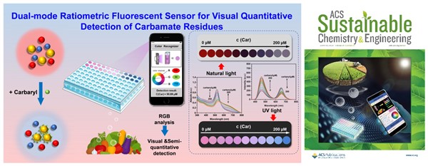 图1. 双模态传感体系快速可视化定量检测西维因残留的机理示意图,该工作受邀作期刊封面报道。