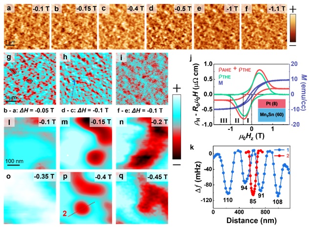 近日,稳态强磁场实验装置(SHMFF)用户半导体超晶格国家重点实验室(中科院半导体研究所)王开友研究员课题组、常凯院士课题组,利用SHMFF高灵敏磁力显微镜系统(MFM),首次在天然金属反铁磁Mn3Sn/Pt异质结构中实现了室温斯格明子的发现。相关研究成果发表在Advanced Materials上。
