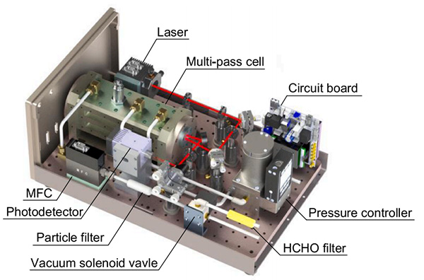 甲醛是一种重要的大气污染物,主要来源于工业过程、化工制品与机动车排放等。在大气化学中,甲醛是人为和自然排放的挥发性有机化合物(VOCs)氧化降解反应过程中关键的中间体产物;在室内环境中,甲醛超标是引发癌症,尤其是白血病的重要原因。因此,对大气甲醛进行实时监测,对大气污染化学和健康效应研究具有重要意义。