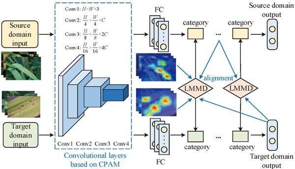 近年来,迁移学习在小样本的作物病害害图像识别任务中得到了广泛的研究。然而当目标域与源域数据集存在较大数据分布差异时,使用迁移学习难以取得良好的效果。针对该问题,科研团队以小样本水稻病害图像识别为例,提出了一种基于注意力机制的领域自适应图像识别方法。首先,该方法优化了水稻病害图像特征在神经网络中的权重分配,使得注意力机制能够更加关注与病害密切相关的特征;其次,将这种注意力机制与领域自适应网络融合,通过减小数据集之间的特征分布差异,进而提高图像识别准确率;最后,为验证所提出方法的有效性设计了对比试验。