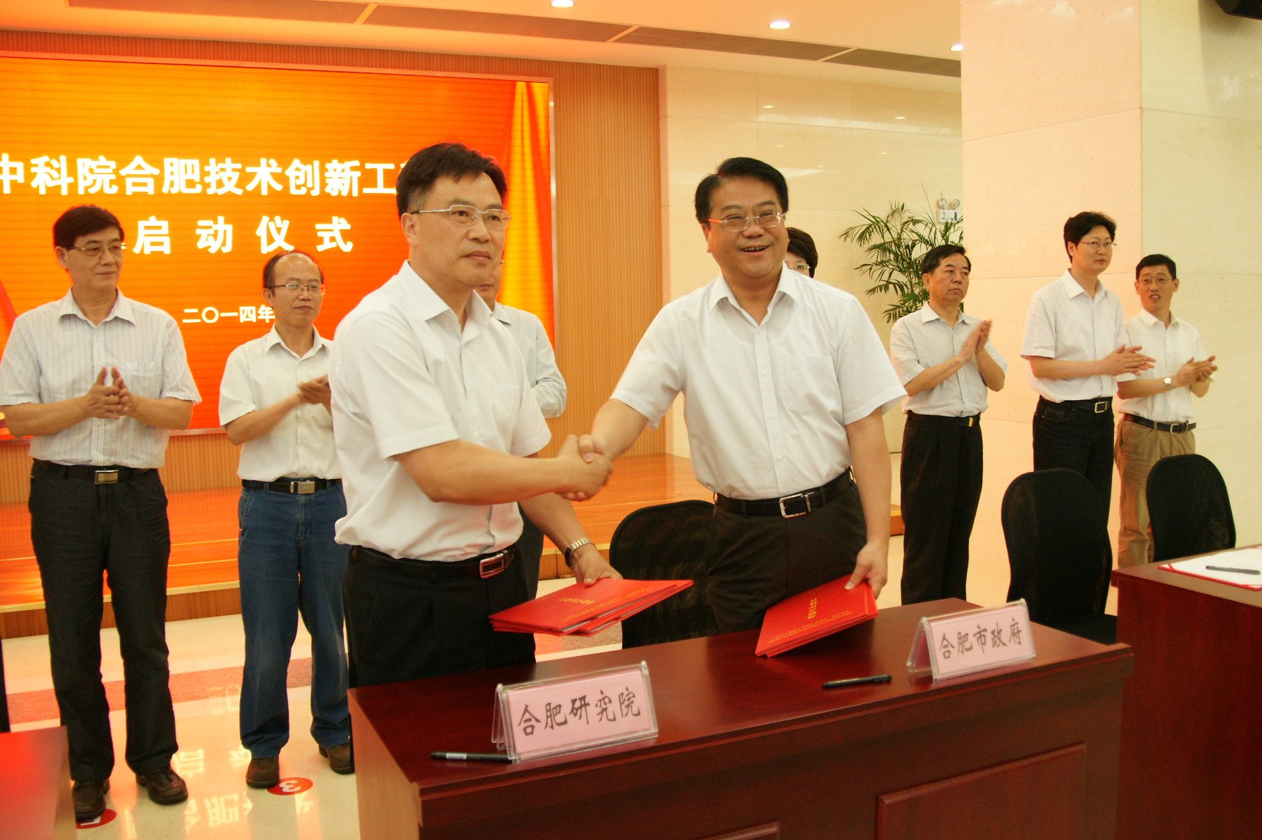 启动仪式上,研究院副院长江海河,合肥市委副书记凌云分别致辞。之后,张庆军和匡光力签署了《合肥市人民政府与中科院合肥研究院共建“中科院合肥技术创新工程院”战略合作协议书》;创新院首批签约了6个项目。