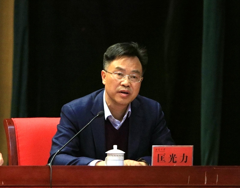 匡光力对省委省政府的高度信任表示感谢。他说,带着中国科学院党组的重托,担任母校安徽大学的校长,倍感荣幸,也深感责任重大,希望自己能够不辱使命。他表示,今后要进一步发挥安徽大学综合性大学的特色和优势,突出重点,实现文、理、工交融发展,特别要紧紧抓住合肥综合性国家科学中心建设带来的历史性发展机遇,加强人才队伍建设,加强制度创新,加强广泛合作,对标一流大学奋勇前进。